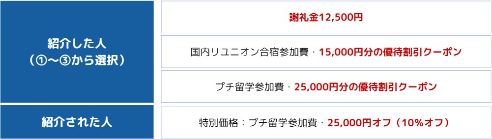 ③プチ留学参加費・25,000円分の優待割引クーポン